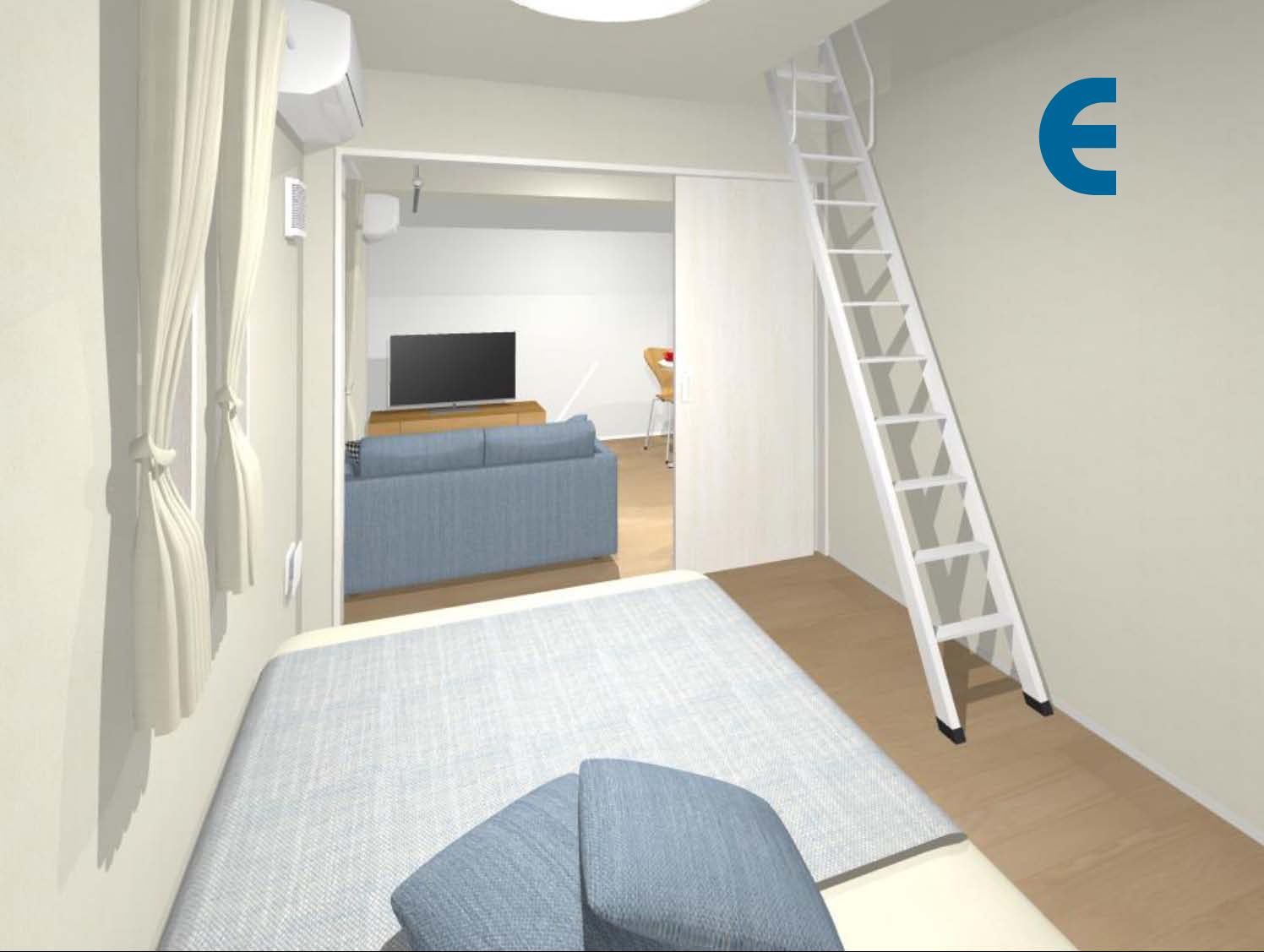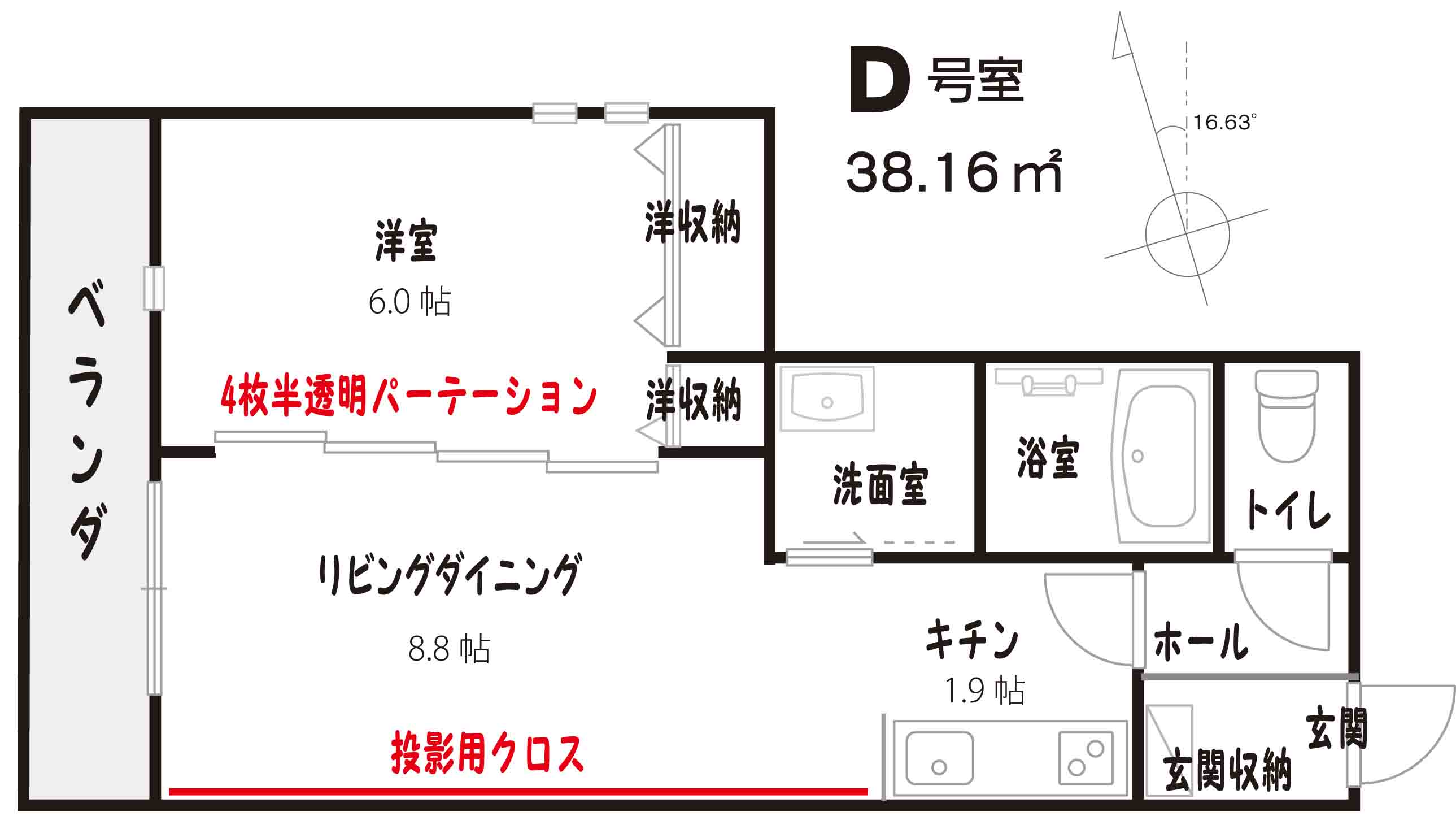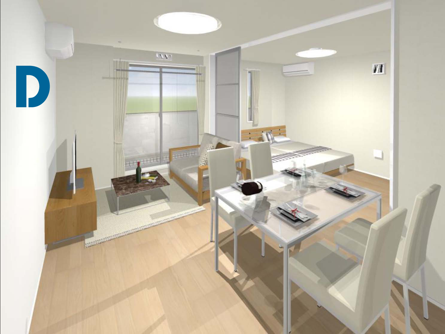 特長 〇4枚開きの半透明パーテーション(部屋を広く使うことが可能)